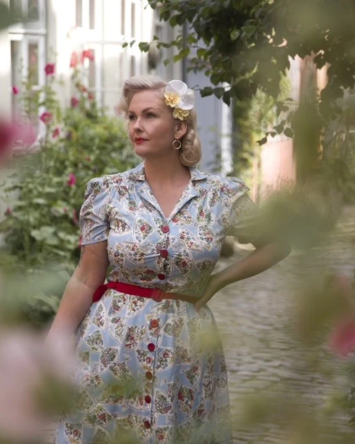 Den här fantastiska klänningen är helt enkelt perfekt för dagar ute i solskenet eller dansande natten lång till några av dina favoritlåtar. En bekväm passande och helt vacker i klassisk 1950-talsstil. Det vackra trycket är autentiskt från en äkta vintageklänning och osar sommarparty. Med sina kontrasterande knappar, matchande skärp och av polyestertyg är den match-made i himlen. Det känns och klär precis som den ska. Mjukt och lätt att ta hand om. Handtvättsprogram i en tvättpåse, 30 grader.