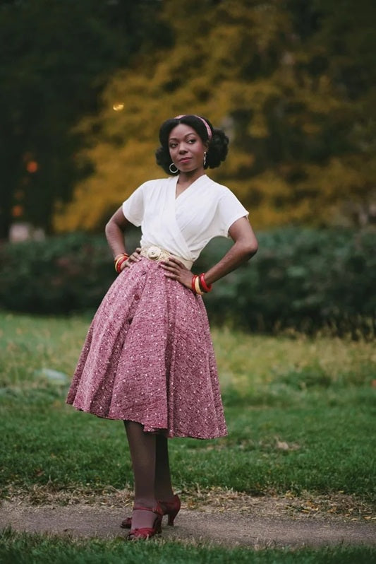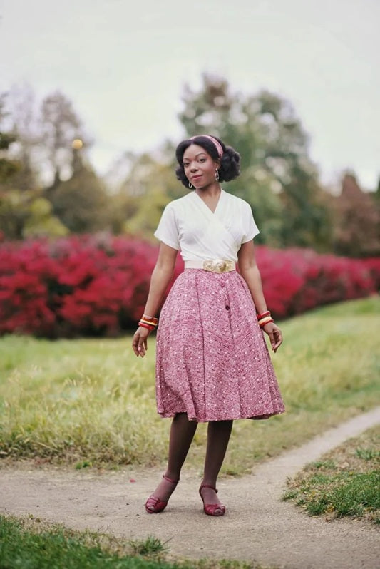 Den ikoniska 1950-talsstilen är så nära autentisk och äkta vintage som du någonsin skulle vilja ha. Det autentiska Poly Crepe-tyget, tillverkat i polyester, hänger vackert och är supermjukt vid beröring. Lättskött också, maskintvätt i 30 grader.