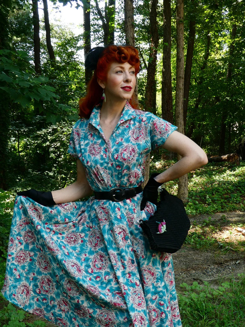 Blusen Maria med vintage mönster från Rock n Romantik, perfekt 1950-talsstil.