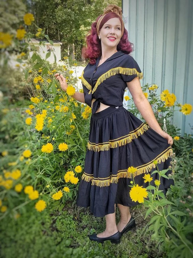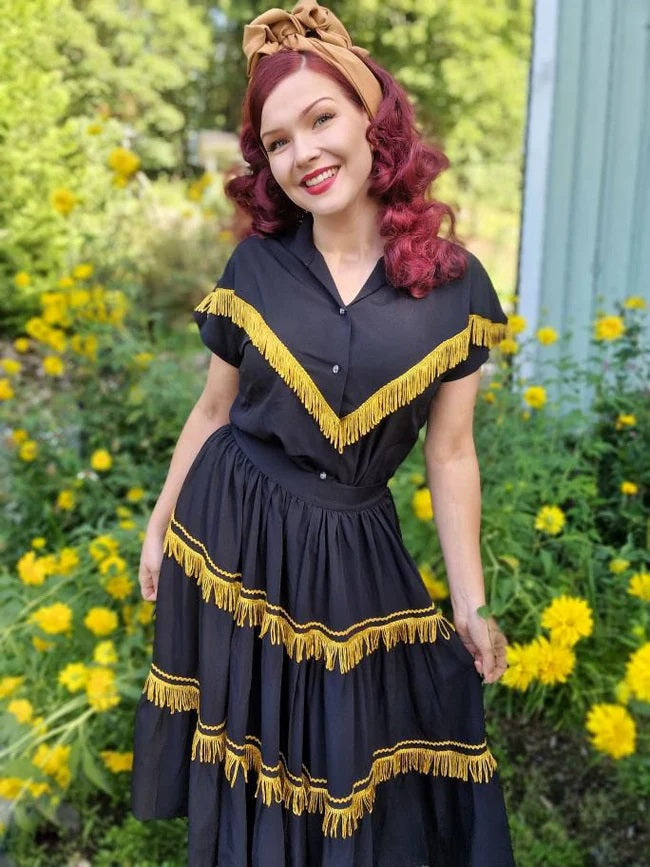Rock N Romance - Nevada Black Patio Blouse with Gold Tassels