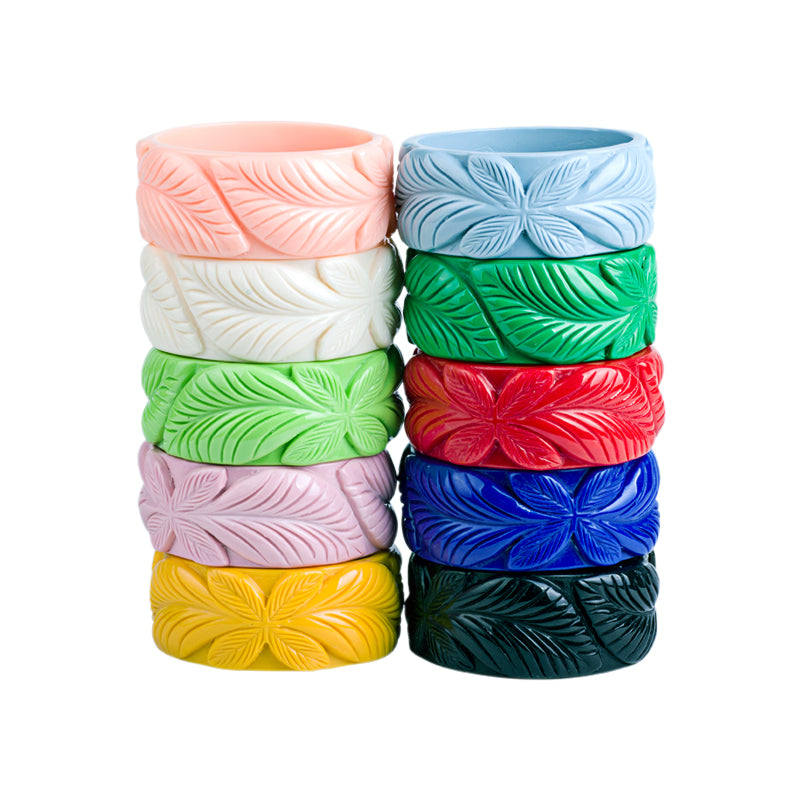 Wide Leaf Carved Fakelite Bangle - Red
